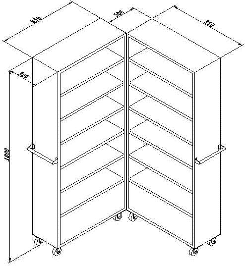 ◆外框采用25×25×1.5方管,外部封板及层板均采用厚度1.0mm板材加工成型;放置六块层板,层距可任意调节; |