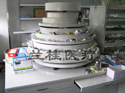 ◆上部由五宝塔形转盘组成,适宜放置瓶装类药品;