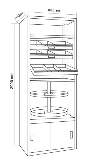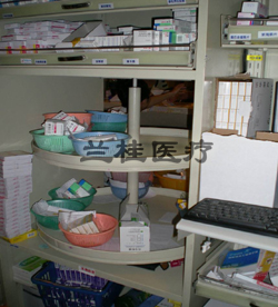 ◆上部药盘层距可自行调节,中间配置传递窗,操作便捷不易出错,下部柜子可放置贵重药品; |