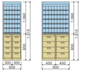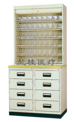 ◆上部采用五层固定隔板,隔板上放置塑料药盒;