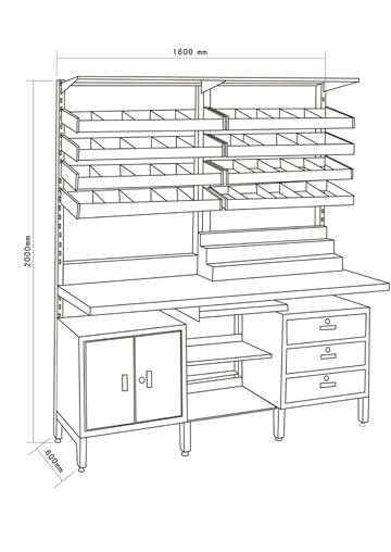 ◆ 药盘可斜放或平放,层距可任意调节;可调式调节脚,使调剂台放置平稳;